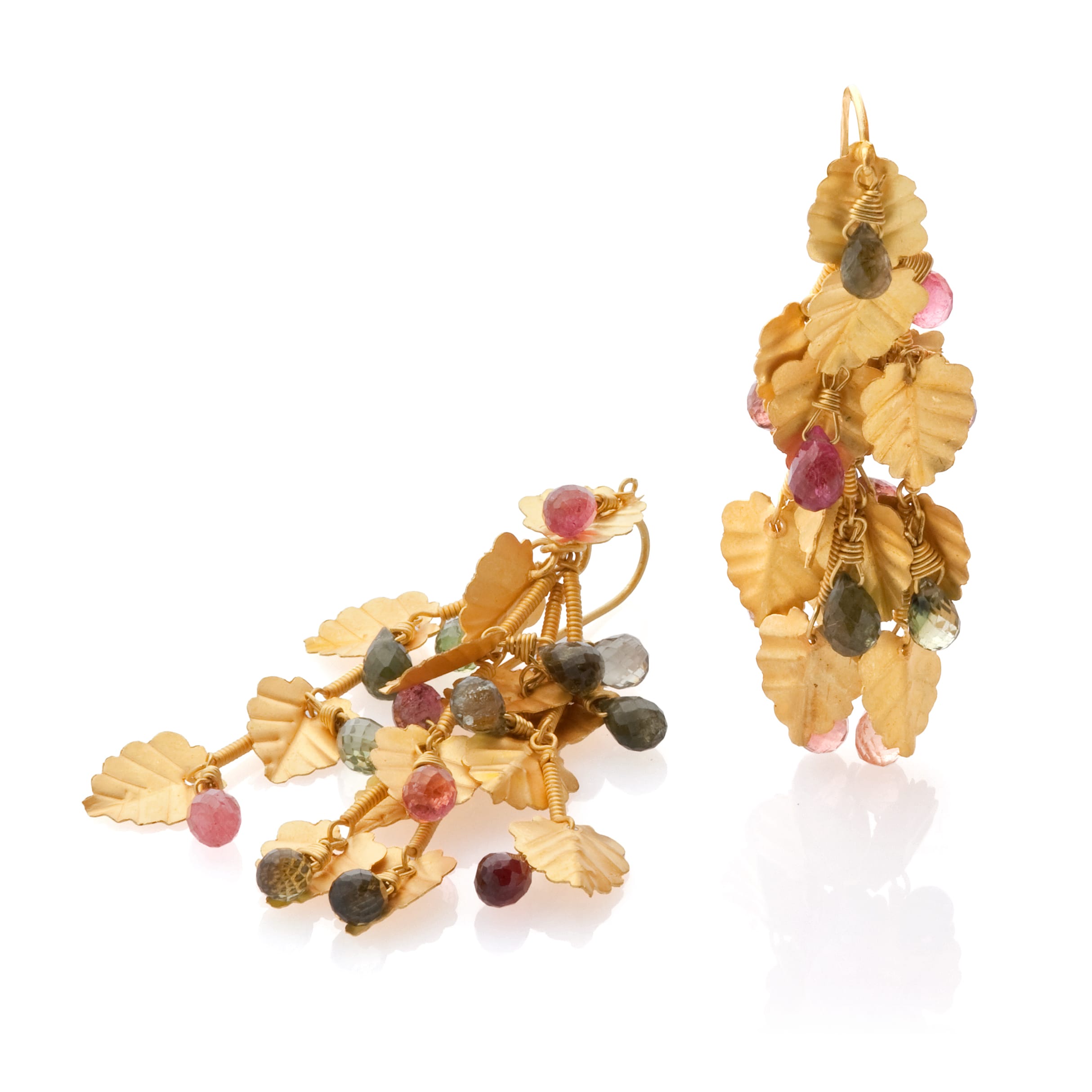 with tourmaline and gold leafs, total length: 6cm/2.4″(ERNo33C)