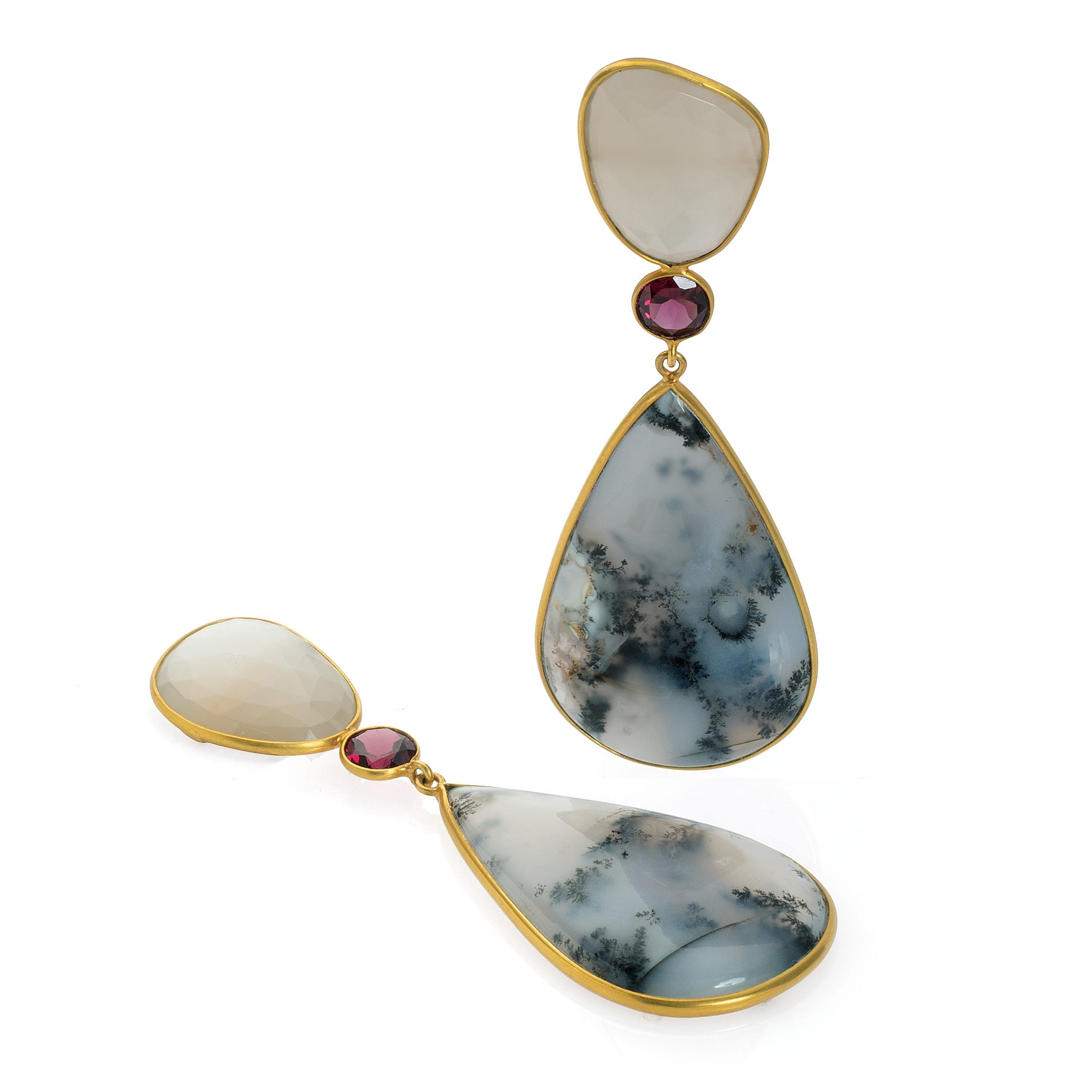 with moonstone, garnet and dendritic opal, length:7cm/2.8″