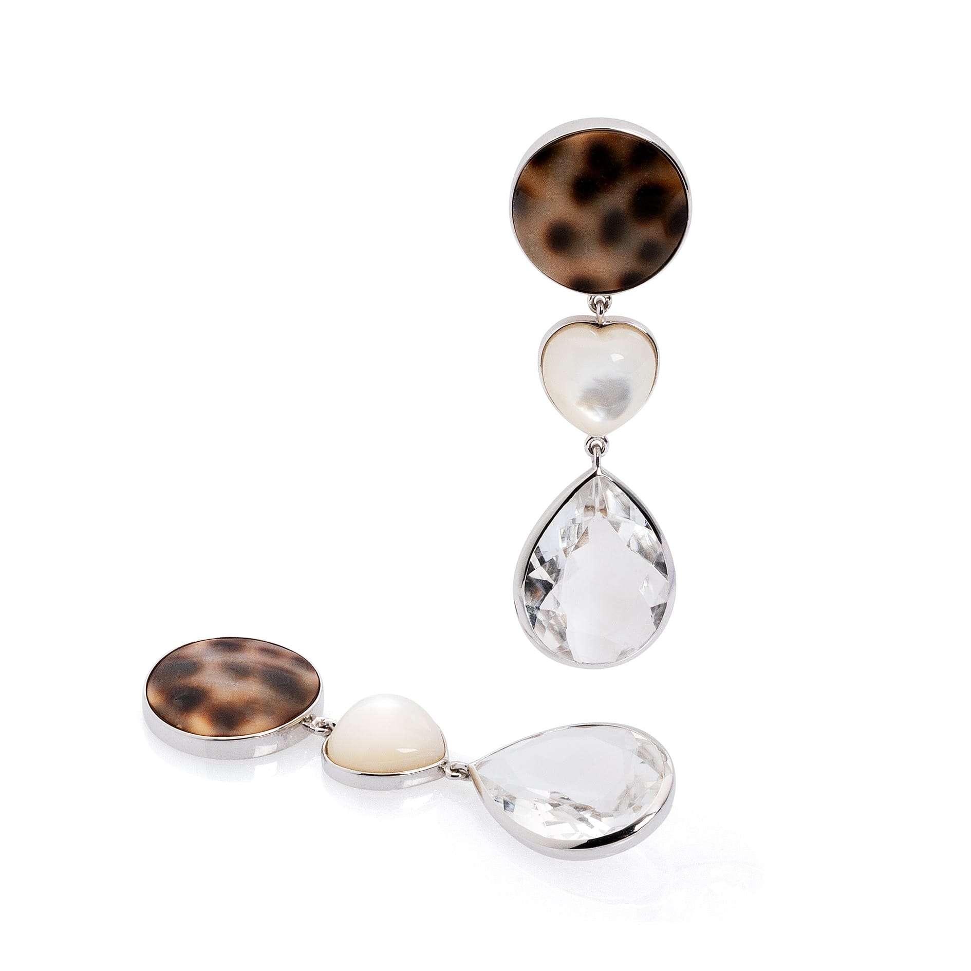 avec disque de coquillage porcellini, cœur en nacre et cristal de roche, longueur : 5 cm/ 2″