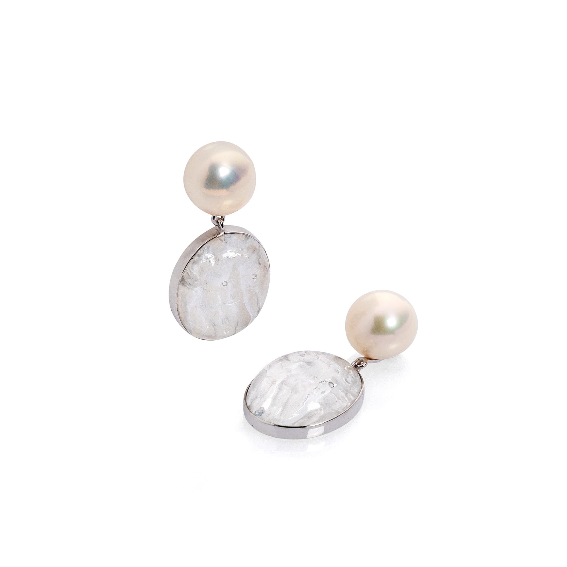 avec perle blanche et camée blanc en verre vénitien, longueur : 3,5 cm/ 1,4″