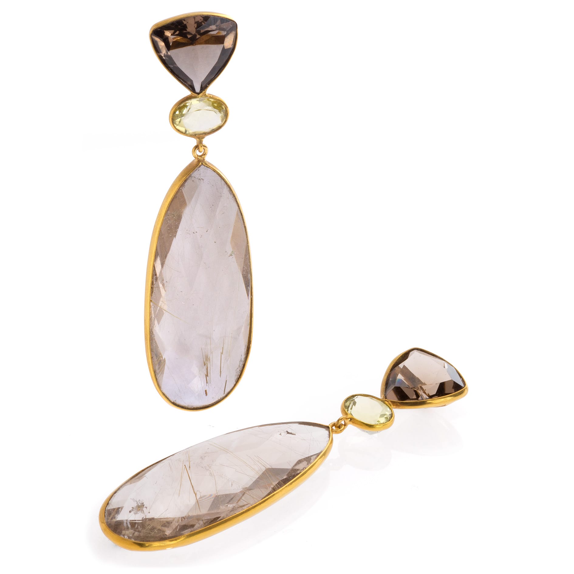 avec quartz fumé, quartz citron et quartz rutilé d’or, longueur: 6.5cm/2.6″