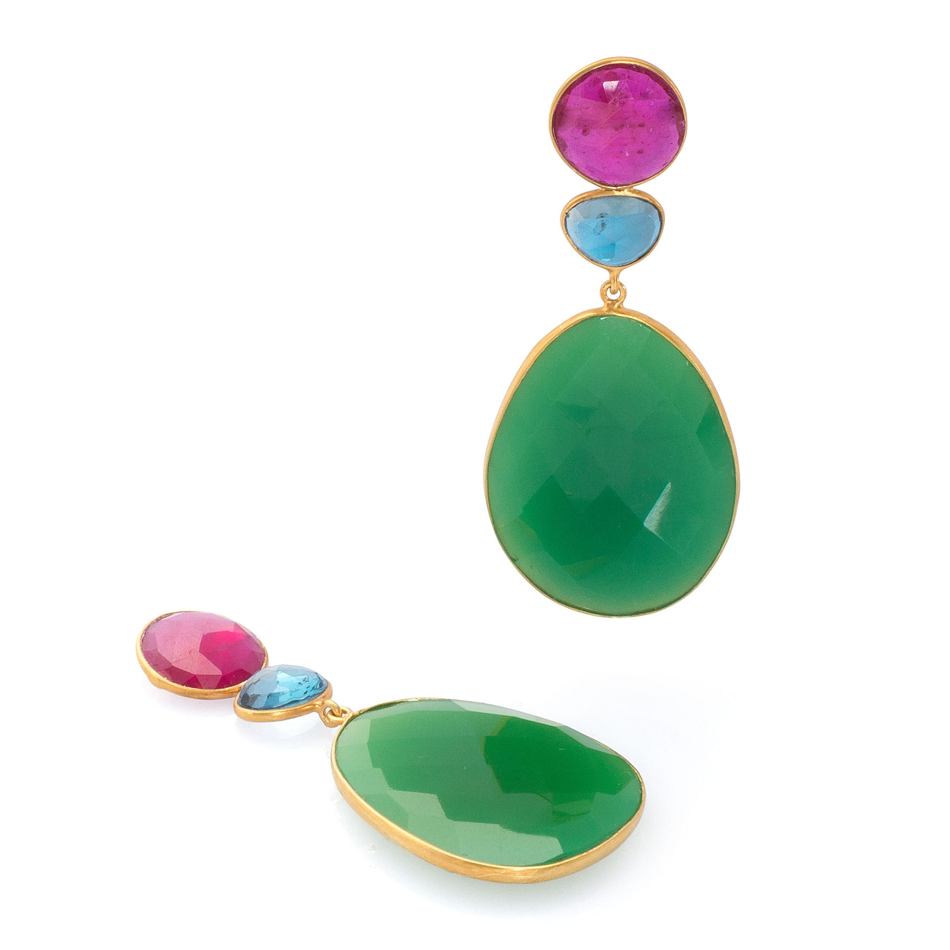 avec rubis traité, topaze bleu-londres et agate verte, longueur: 5.5cm/2.2″