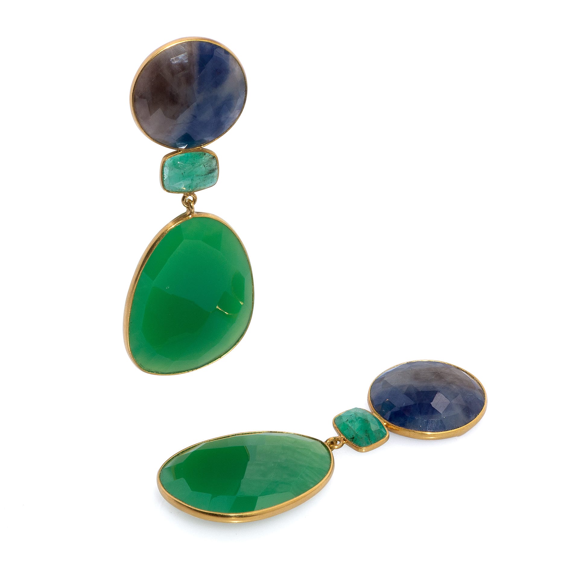 avec saphir, eméraude et agate verte