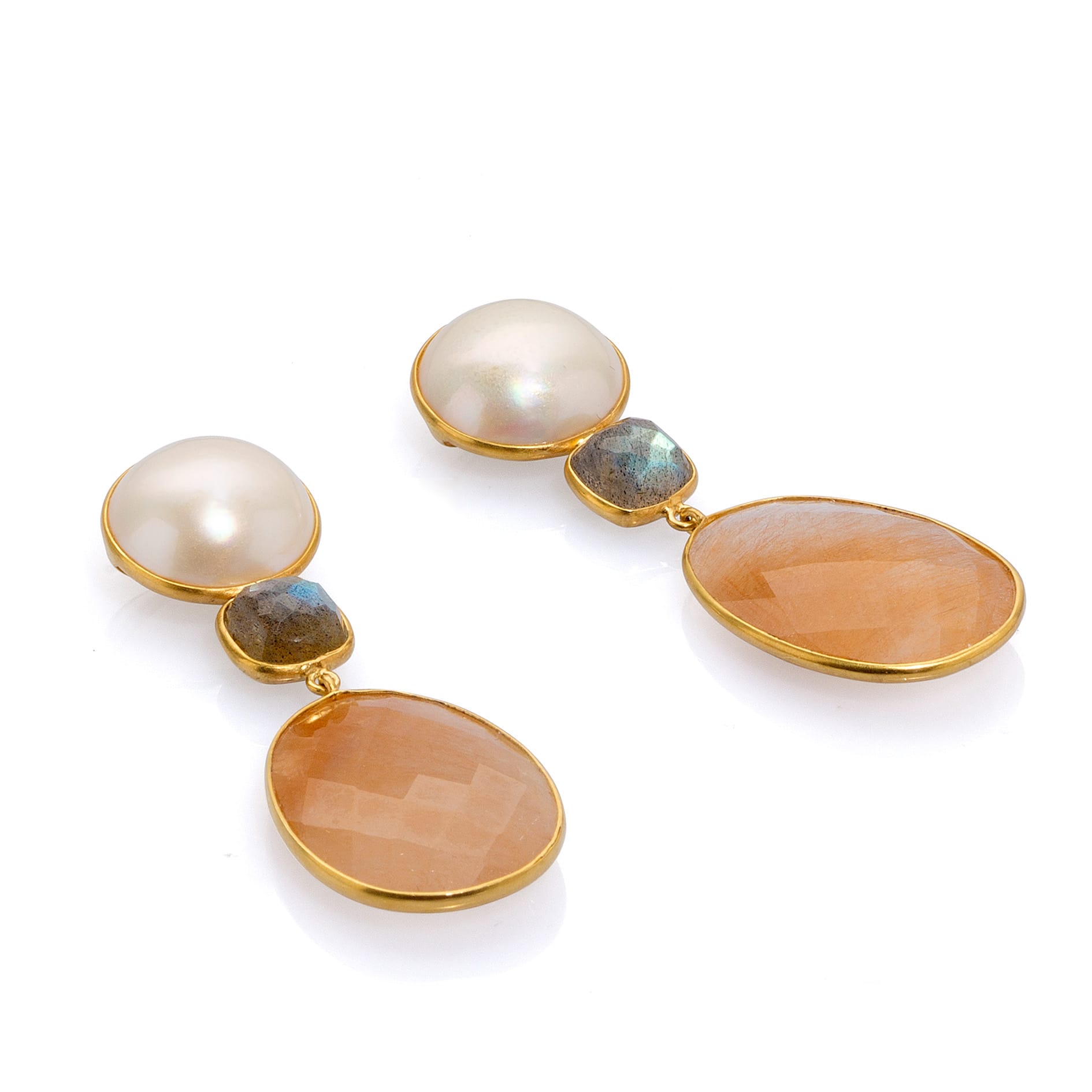 avec perle mabé, labradorite et quartz rutilé, longueur: 5.5cm/2.15″