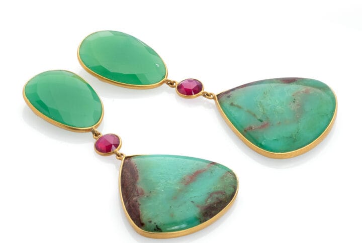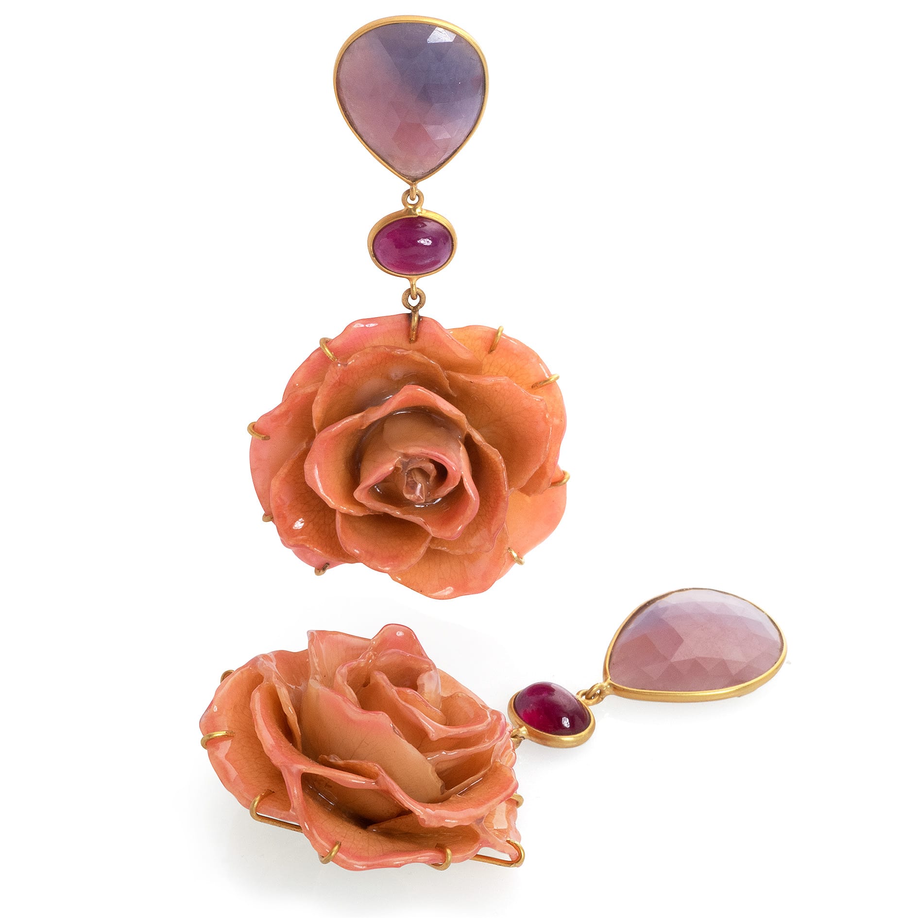 avec saphire, rubis traité et rose véritable, longueur: 7cm/2.8″