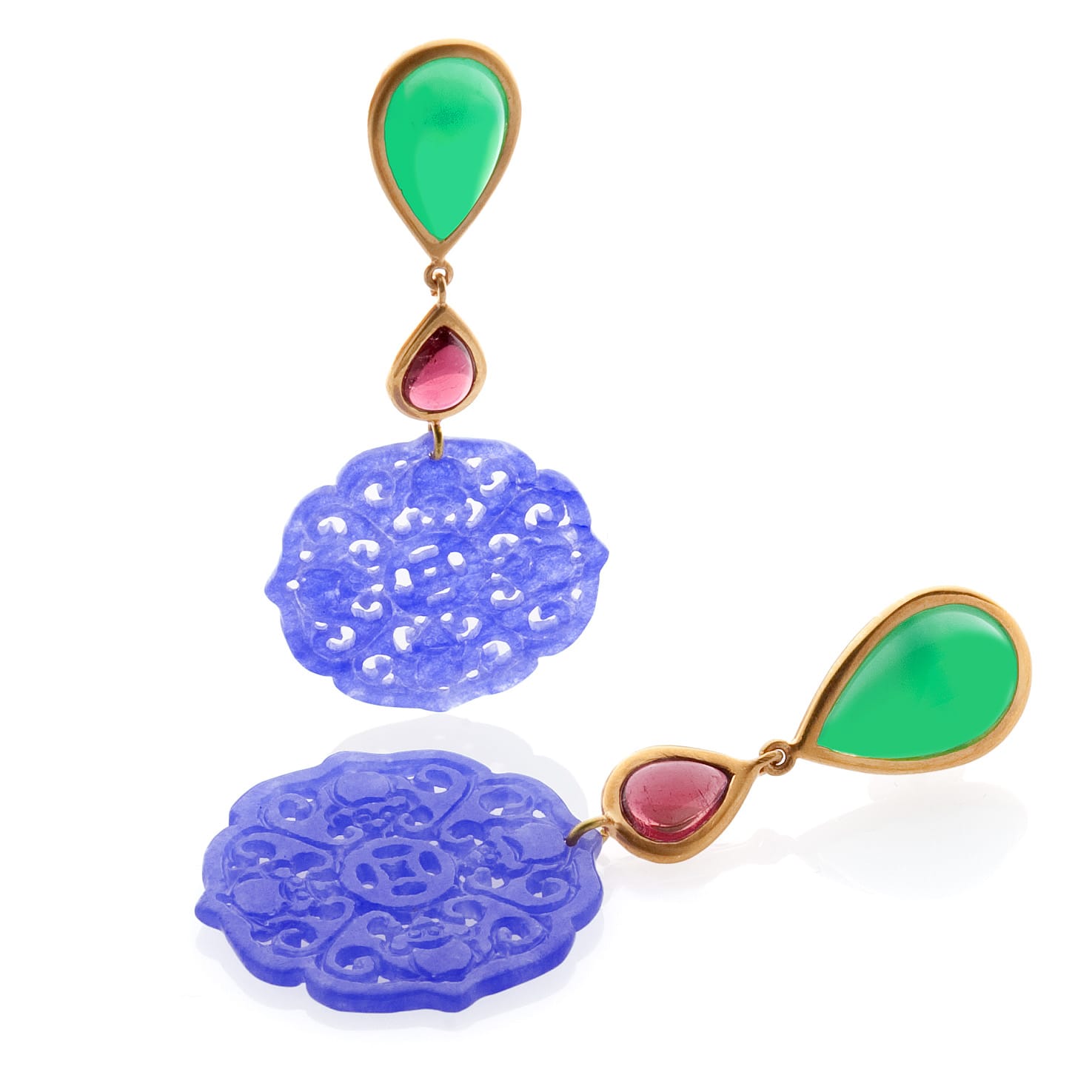 avec chrysoprase, rubelite et disques en jade lavende