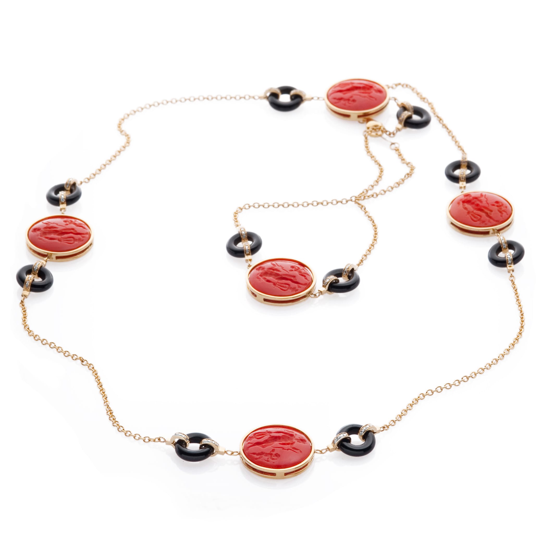 avec camées rouges en verre vénitien, onyx noir et diamants