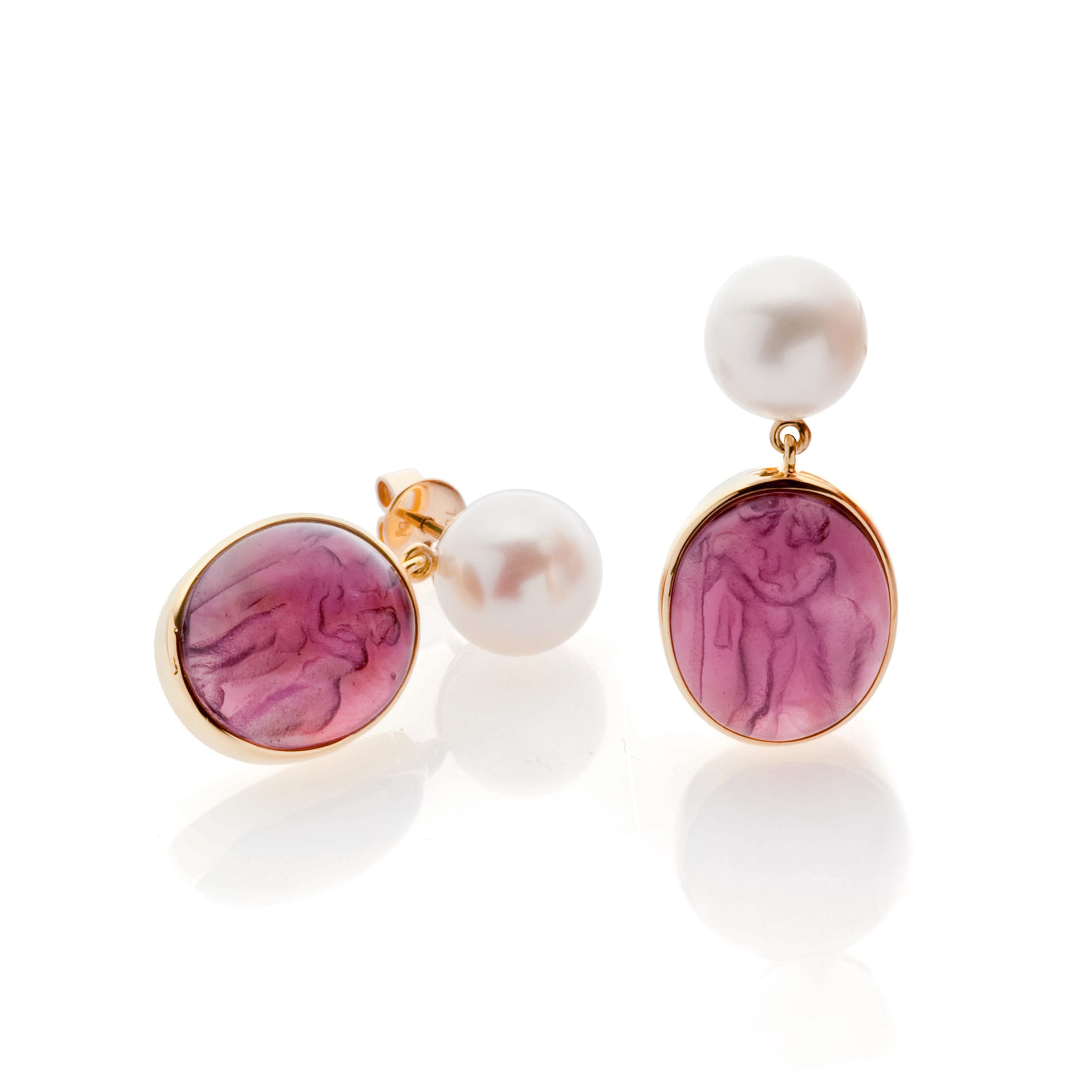 mit mauve Kamee aus venezianischem Glas, Perlmutter und Perlen