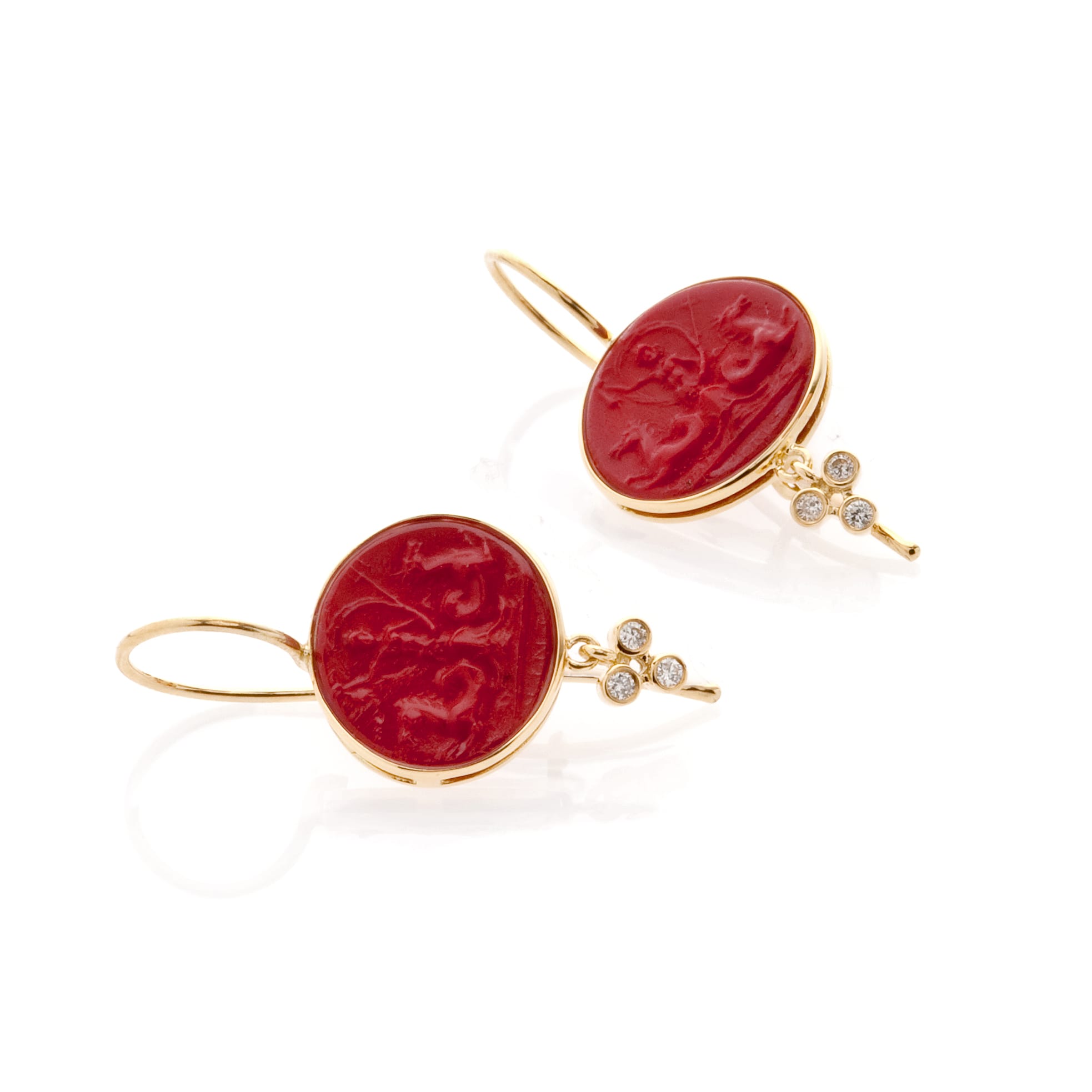 mit rotem Kamee aus venezianischem Glas und Diamanten