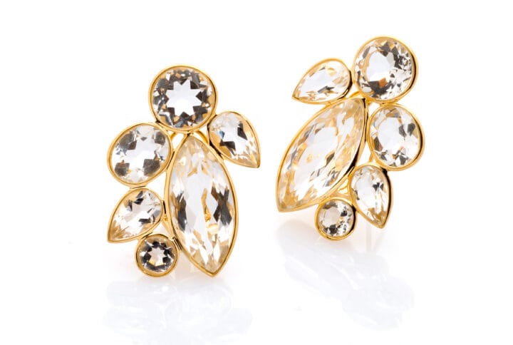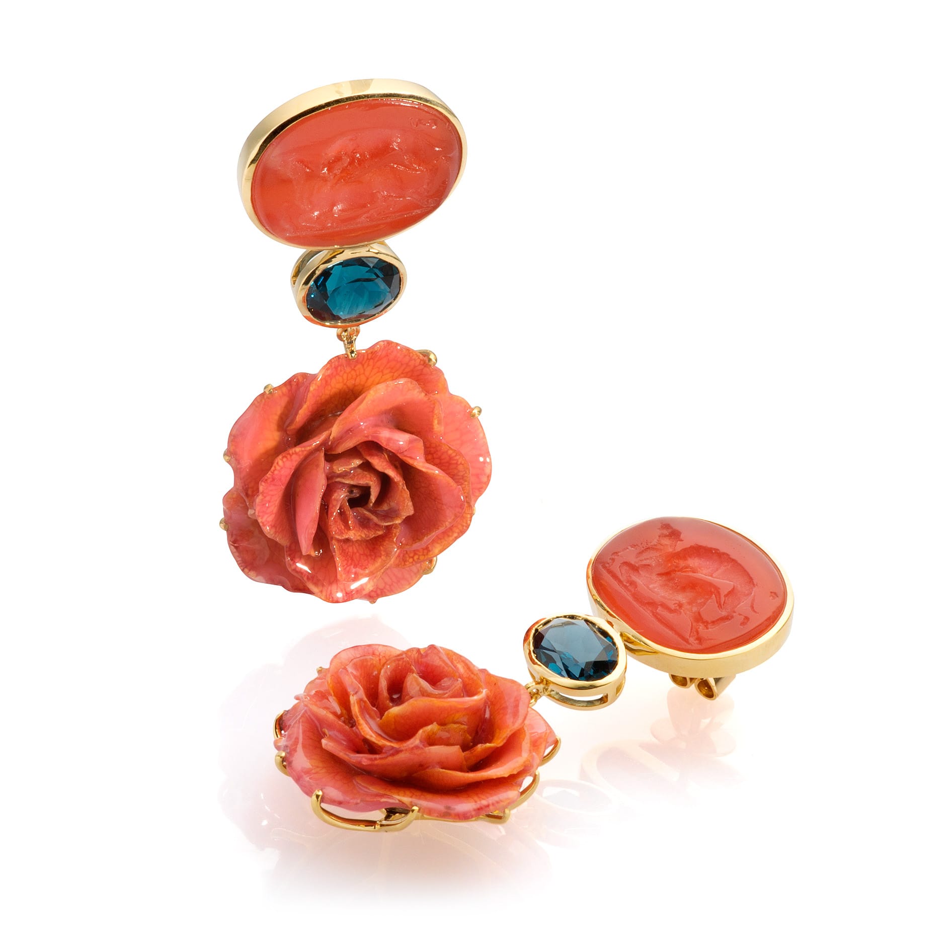 mit korallenfarbenem Kamee aus venezianischem Glas, londonblauem Topas und echter Rose