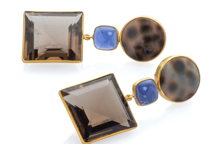 mit Amazonite, londonblauem Topas und grünem Kamee aus venezianischem Glas, Länge: 4.5cm/1.8″