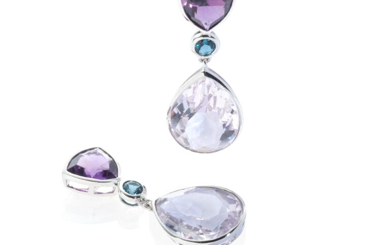 mit Rauchquarz, Citrin und weissem Kamee aus venezianischem Glas mit Perlmutterplättchen, Länge: 5.1cm/2″