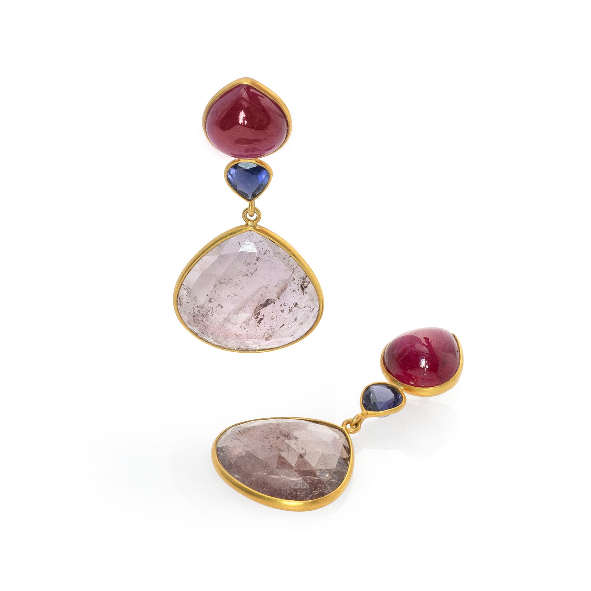 mit glassfilled Rubin, Iolith und pinkem Turmaline, Länge: 4.3cm/1.7″
