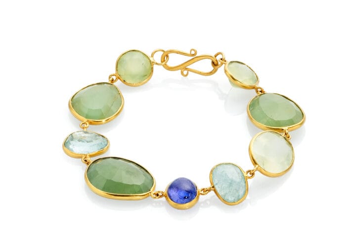 mit Saphir und weissem Labradorit, Länge: 7.5cm/3″