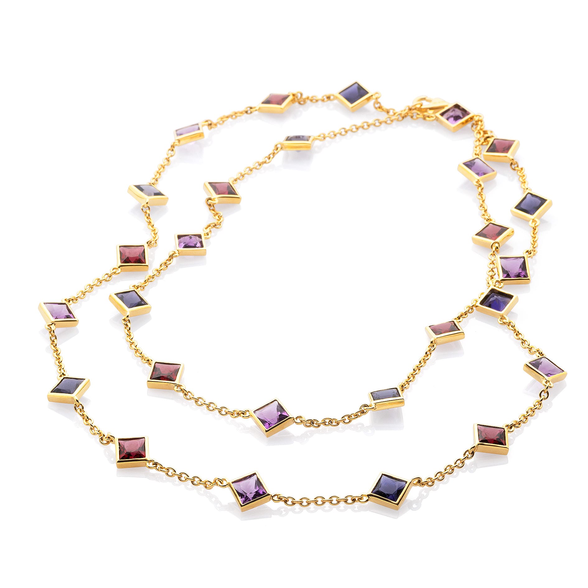 mit Amethyst, Granat und Iolith, Länge: 86cm/34.4″
