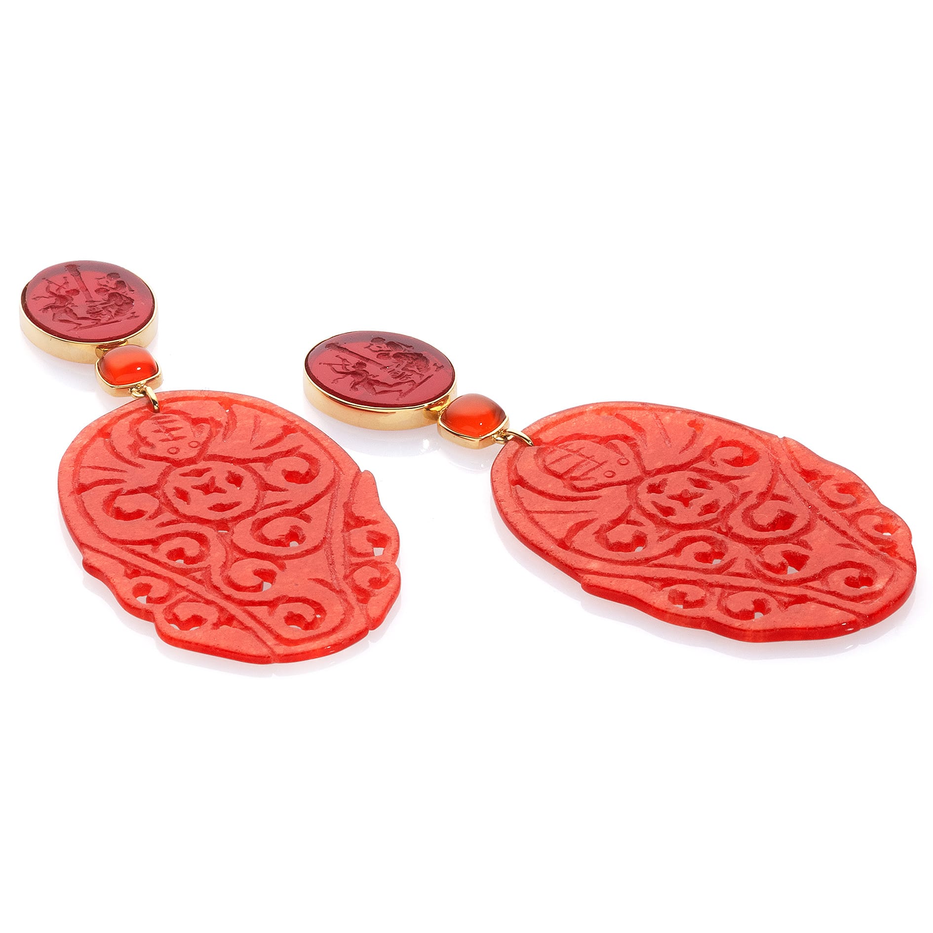 mit rotem Kamee aus venezianischem Glas, Karneol und geritzter Agathescheibe, Länge: 7.5cm/3″