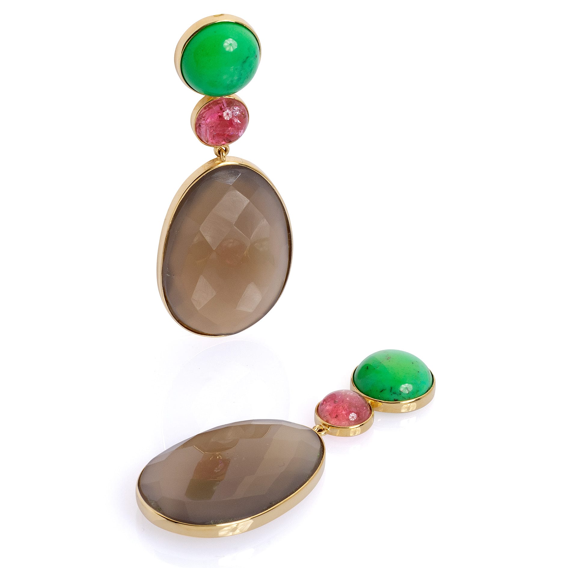 mit grünem Türkis, pinkem Turmalin und grauem Agathe, Länge: 5.5cm/2.2″