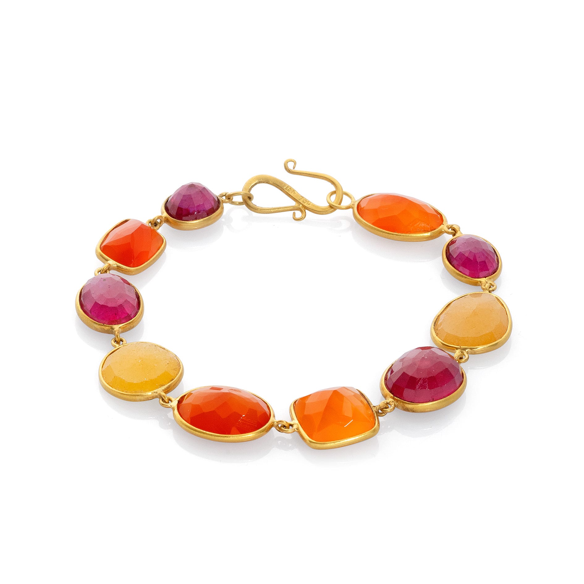 mit Karneol, gelbem Aventurin-Quarz und glassfilled Rubin, Länge: 18cm/7.2″