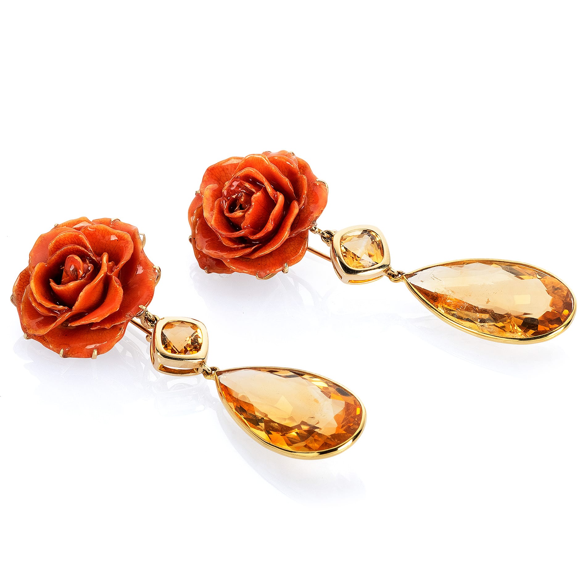 mit echter Rose und Citrin, Länge: 7.5cm/ 3″