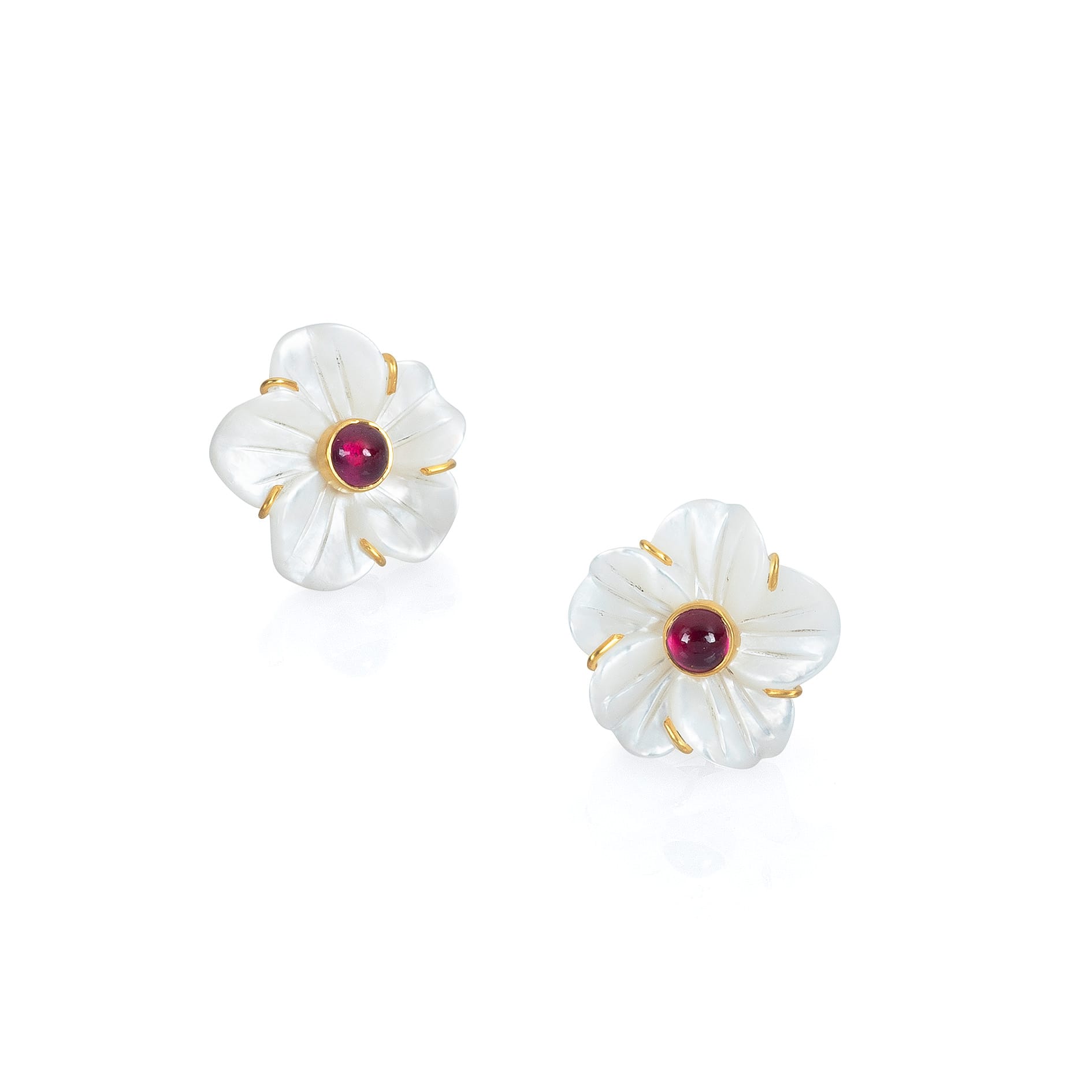 mit Perlmutterblume und glassfilled Rubin, Durchmesser: 2cm/ 0.8″
