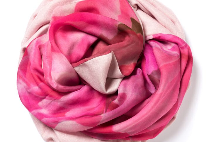 mit floral bedrucktem Seidenchiffon auf einer Seite des Schals, Grösse 1x2m