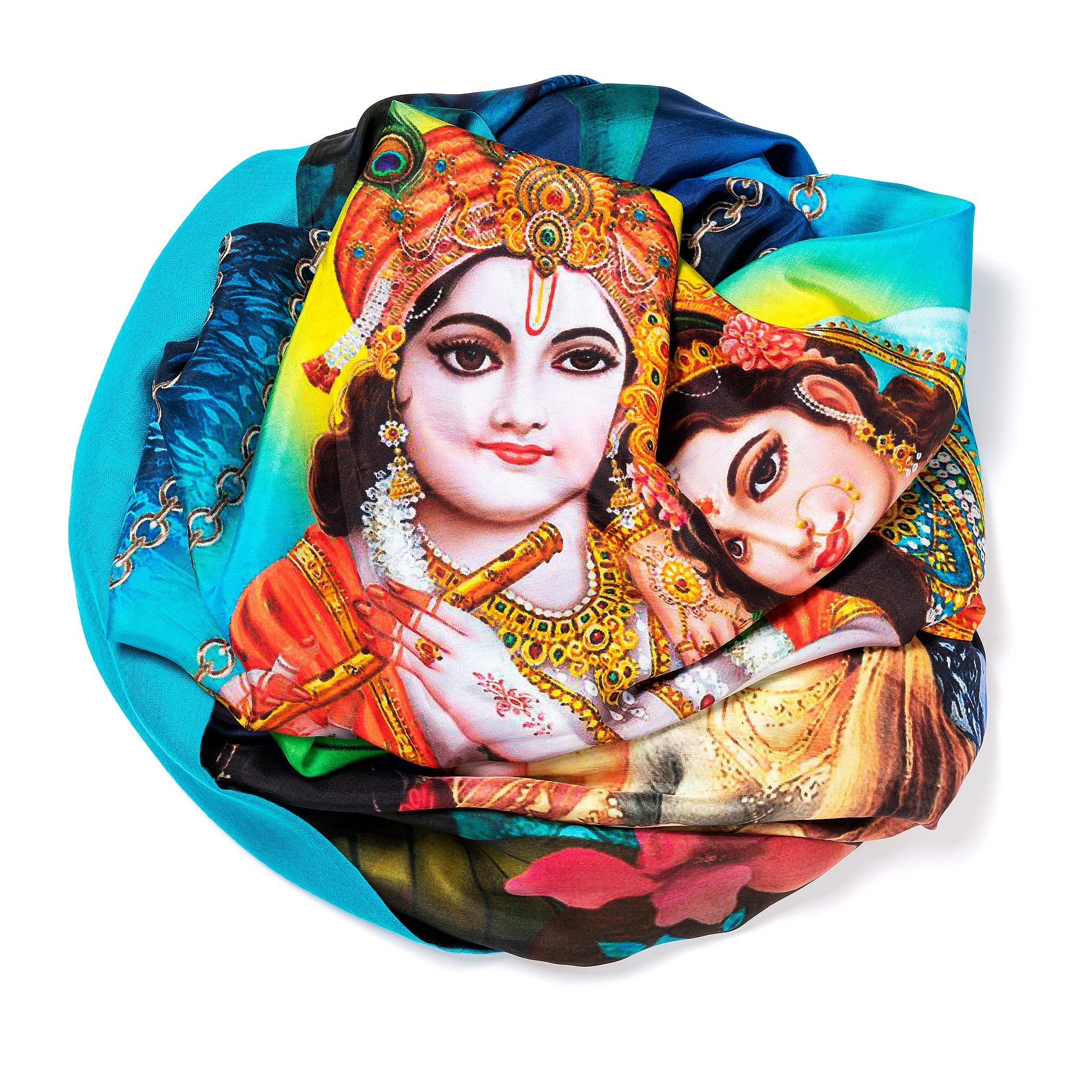 mit bedrucktem Seidenchiffon (Radha und Krishna) auf einer Seite des Schals, Grösse 1x2m