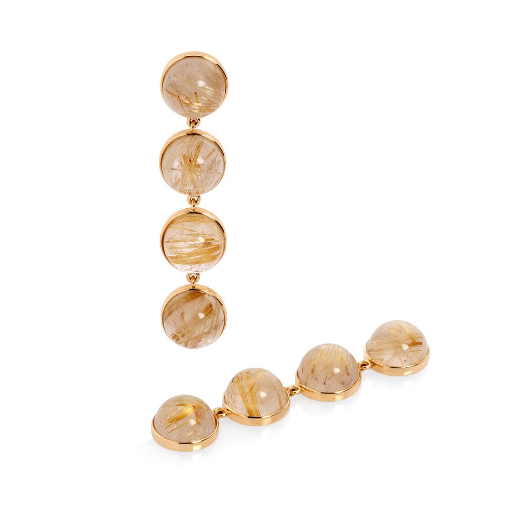 Der Schwerpunkt dieser Kollektion liegt auf den sehr farbenfroh-funkelnden und facettierten Steinen. Ihre Briolette-Form symbolisiert die Regentropfen während des Monsoons und gab dieser Linie ihren Namen. Die Steine sind an sehr zarten 18-karätigen Gelb- und Weißgoldketten befestigt, so dass sie zu schweben scheinen. Der Fokus liegt auf den schillernden Brioletten, und die Ketten dienen lediglich als Medium, um die kleinen Tropfen zu befestigen und sie zum Funkeln zu bringen.